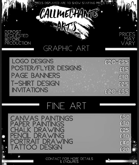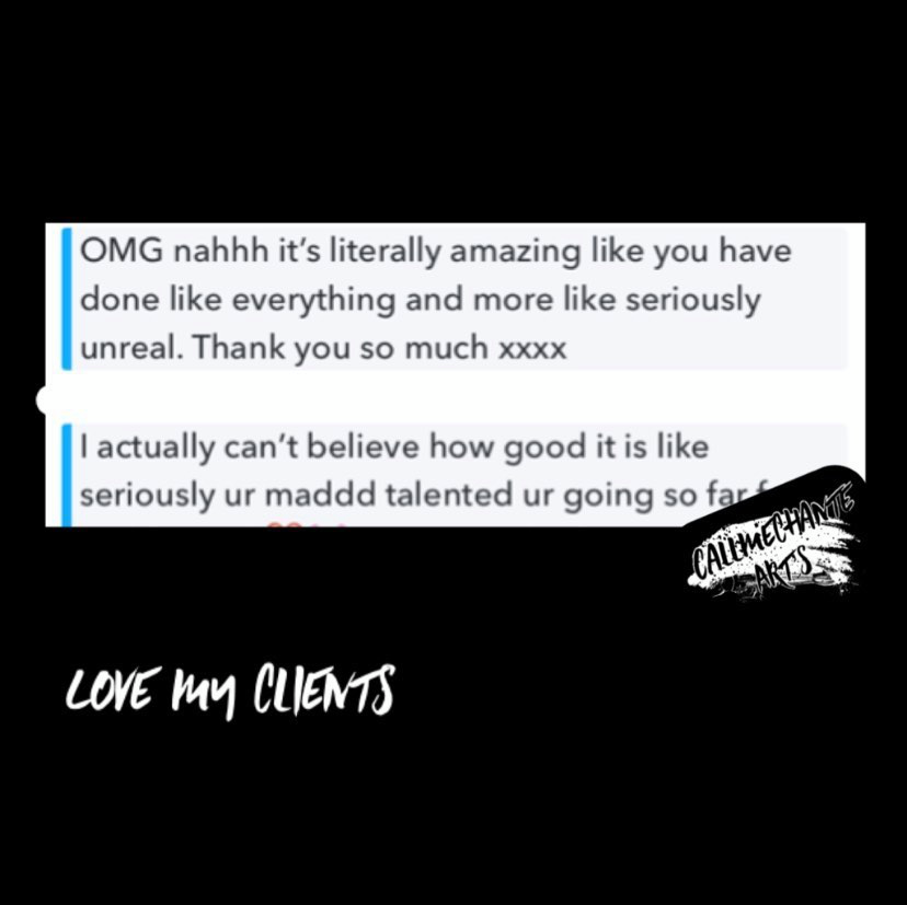 I am a young artist who has a passion for Art and Design. I have been expressing myself and experiences through art from a very young age. CallMeChanté Arts has allowed me to share my passion with my clients, putting smiles on their faces. I use art and graphics to design customised pieces for my clients. I love what I do and ensure my clients have a positive experience and are 100% satisfied.
